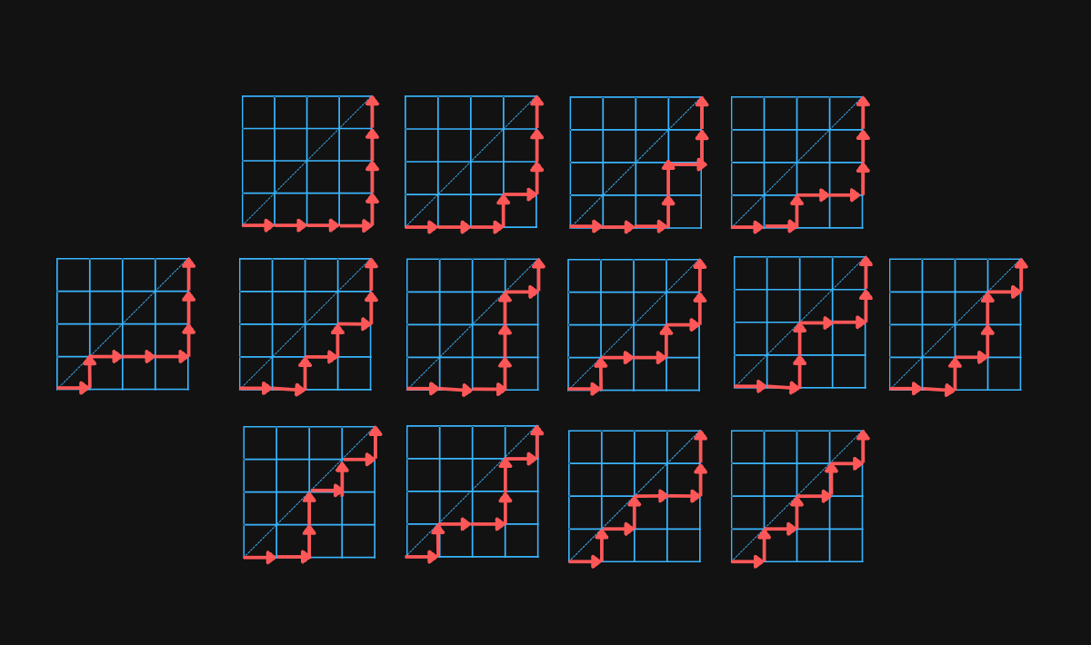 For example, there are paths in a grid: